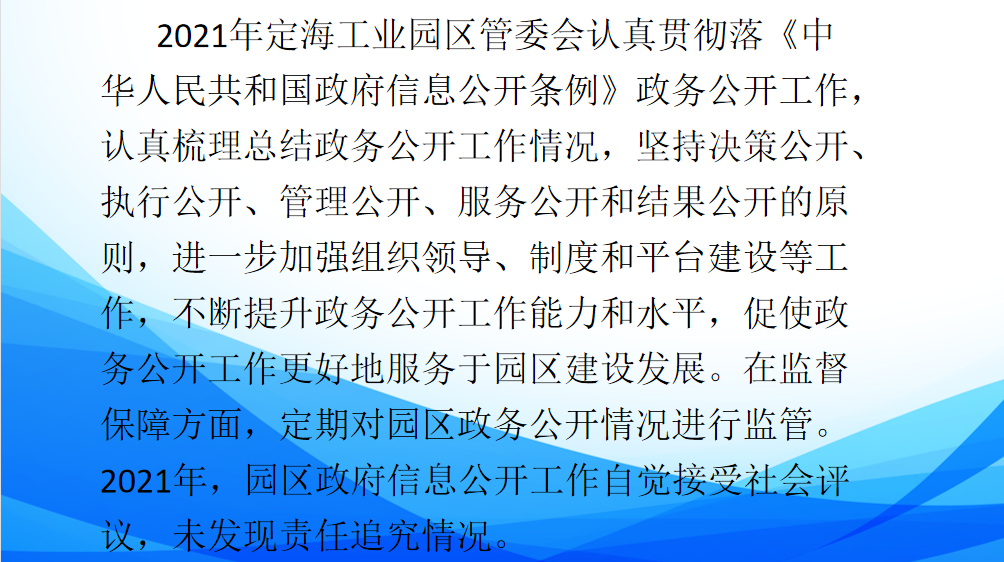定海工業園區2021年政府信息公開工作年度報告
