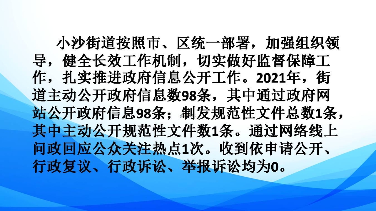 小沙街道政府信息公開工作2021年度報告