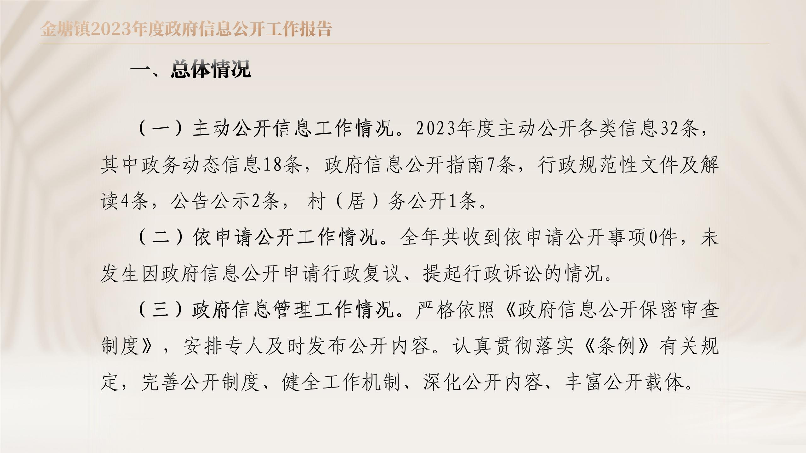 金塘鎮2023年度政府信息公開工作報告