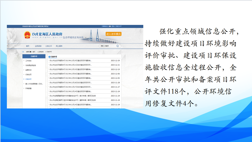 舟山市生態環境局定海分局2023年度政府信息公開工作年度報告