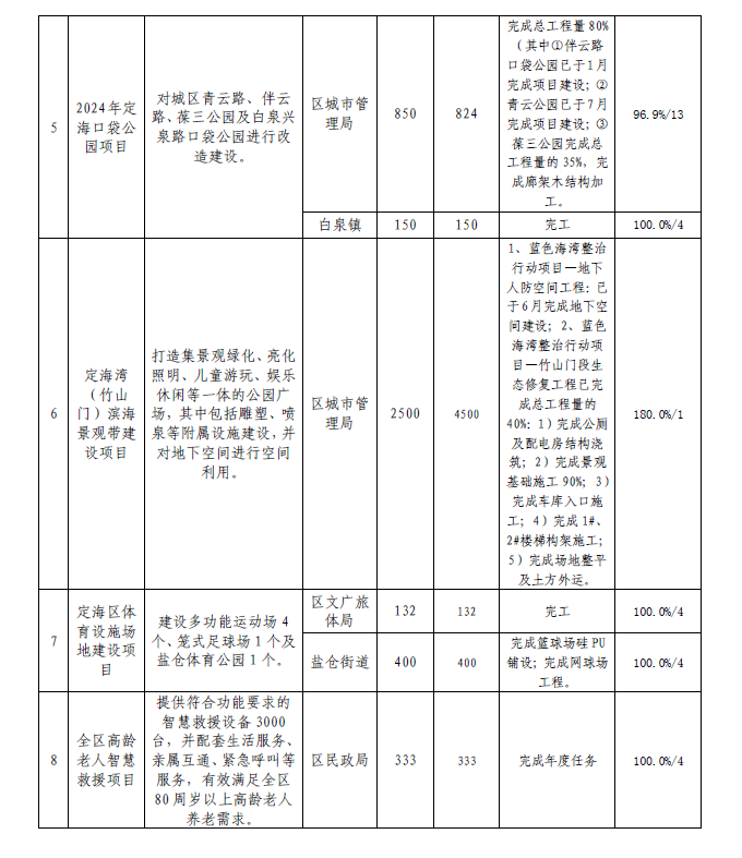 2024年定海區政府民生實事代表票決項目10月份情況表