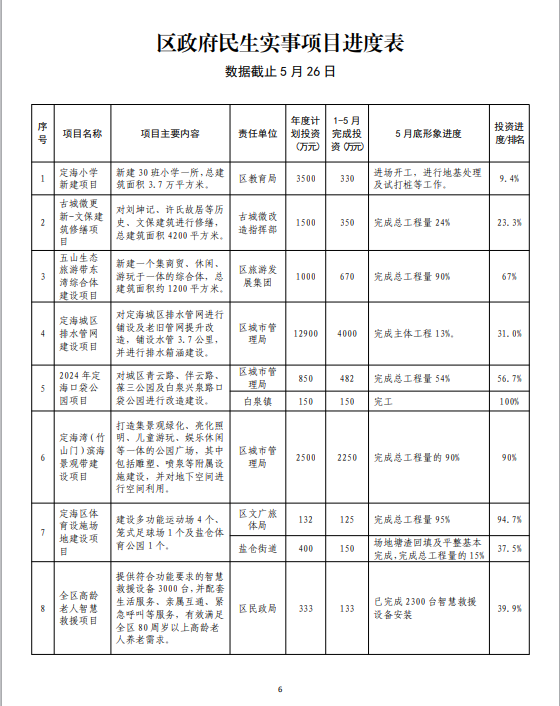 2024年定海區(qū)政府民生實(shí)事代表票決項(xiàng)目5月份情況表