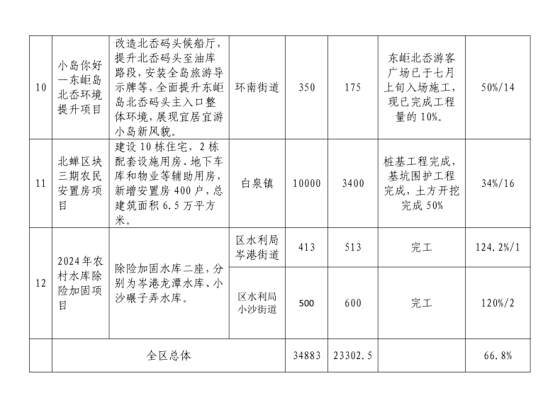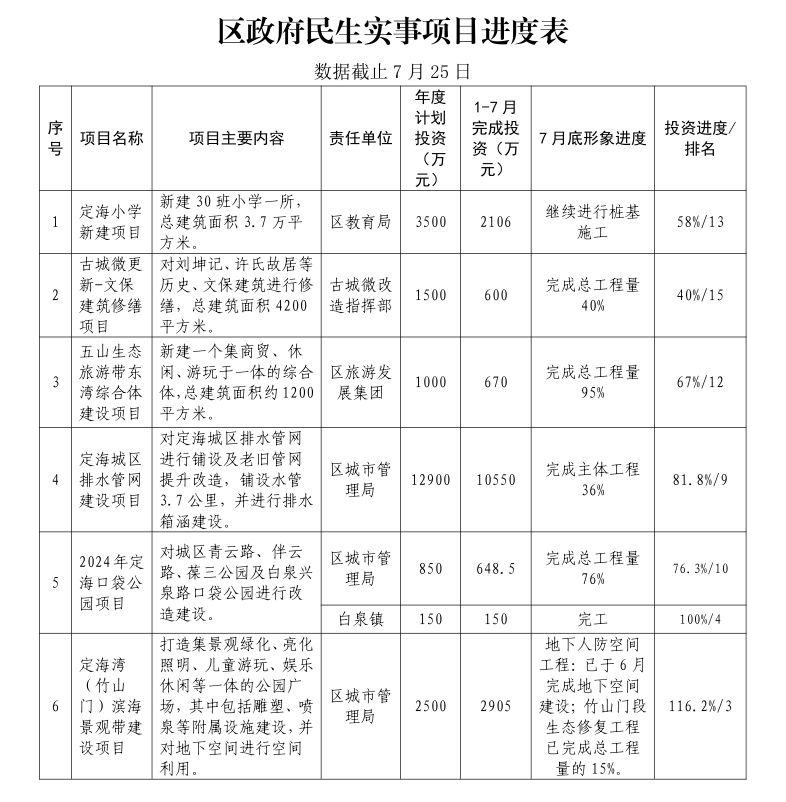 2024年定海區政府民生實事代表票決項目7月份情況表