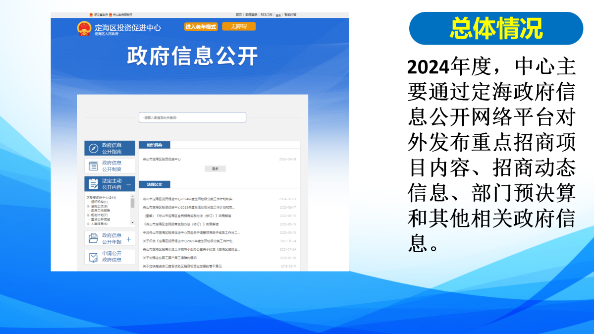 2024年度舟山市定海區投資促進中心政府信息公開工作年度報告