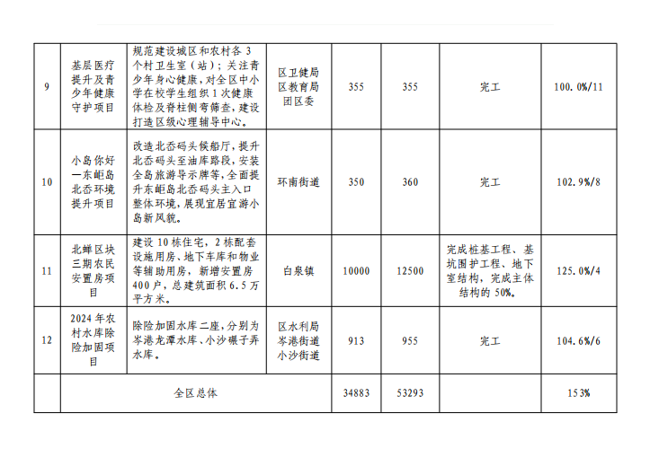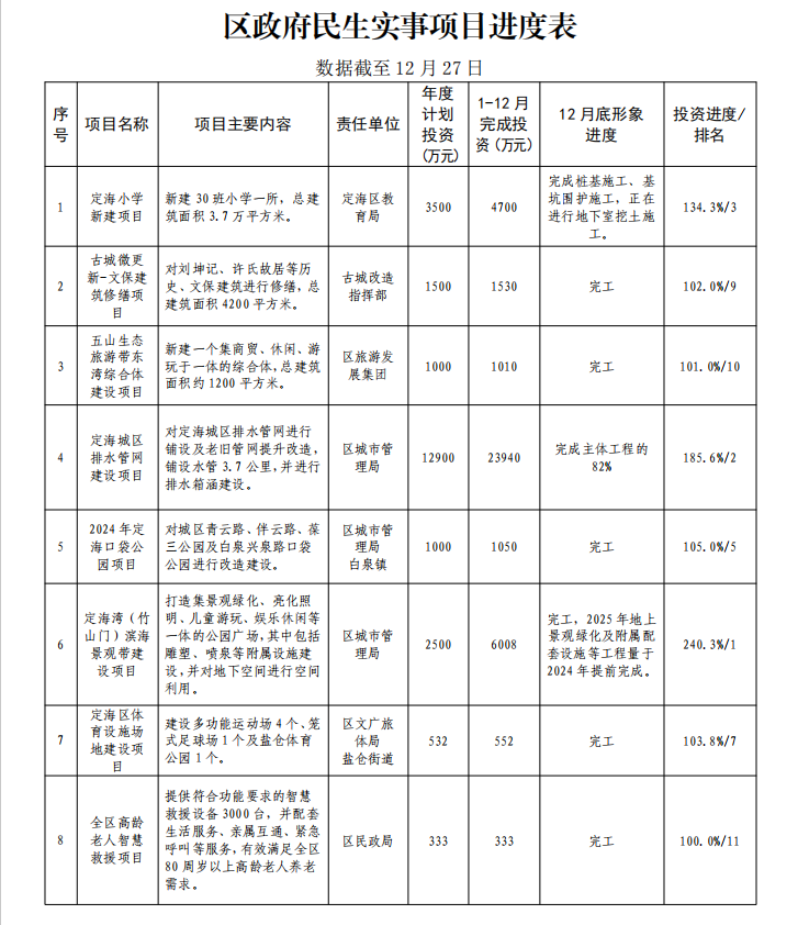 2024年定海區政府民生實事代表票決項目12月份情況表