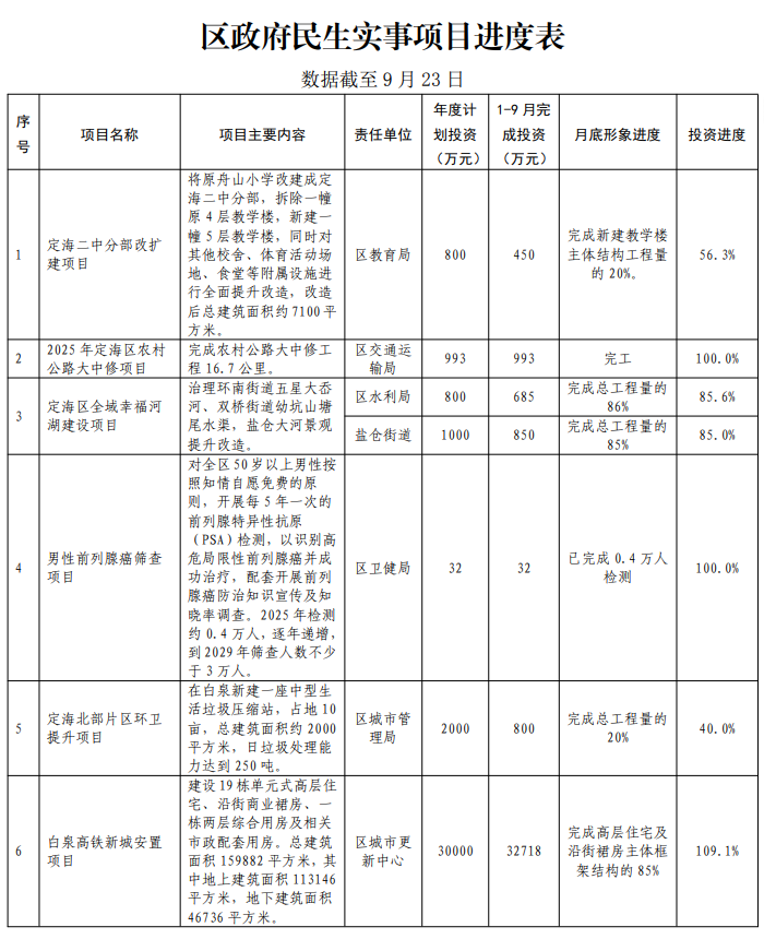 2025年區(qū)政府民生實(shí)事項(xiàng)目進(jìn)度表(9月)