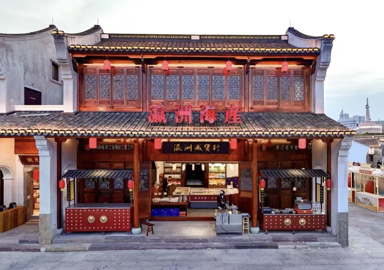 瀛洲海產(chǎn)的歷史可追溯至清康熙年間的“瀛洲咸貨行”,彼時(shí)舟山以“瀛洲”為名,古城內(nèi)的海鮮行與咸貨行聲名遠(yuǎn)播。