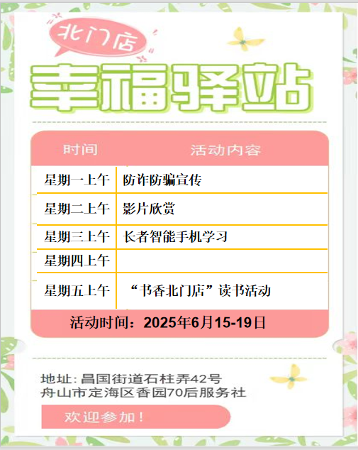 定海區(qū)“幸福+”民生服務(wù)陣地|公益服務(wù)一周活動預(yù)告(6.16-6.22)
