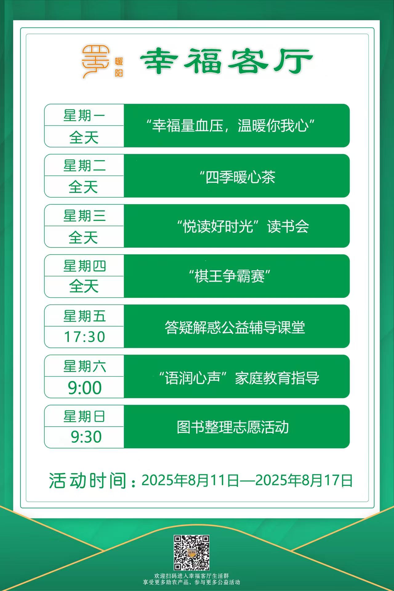 定海區(qū)“幸福+”民生服務陣地|公益服務一周活動預告(8.11-8.17)