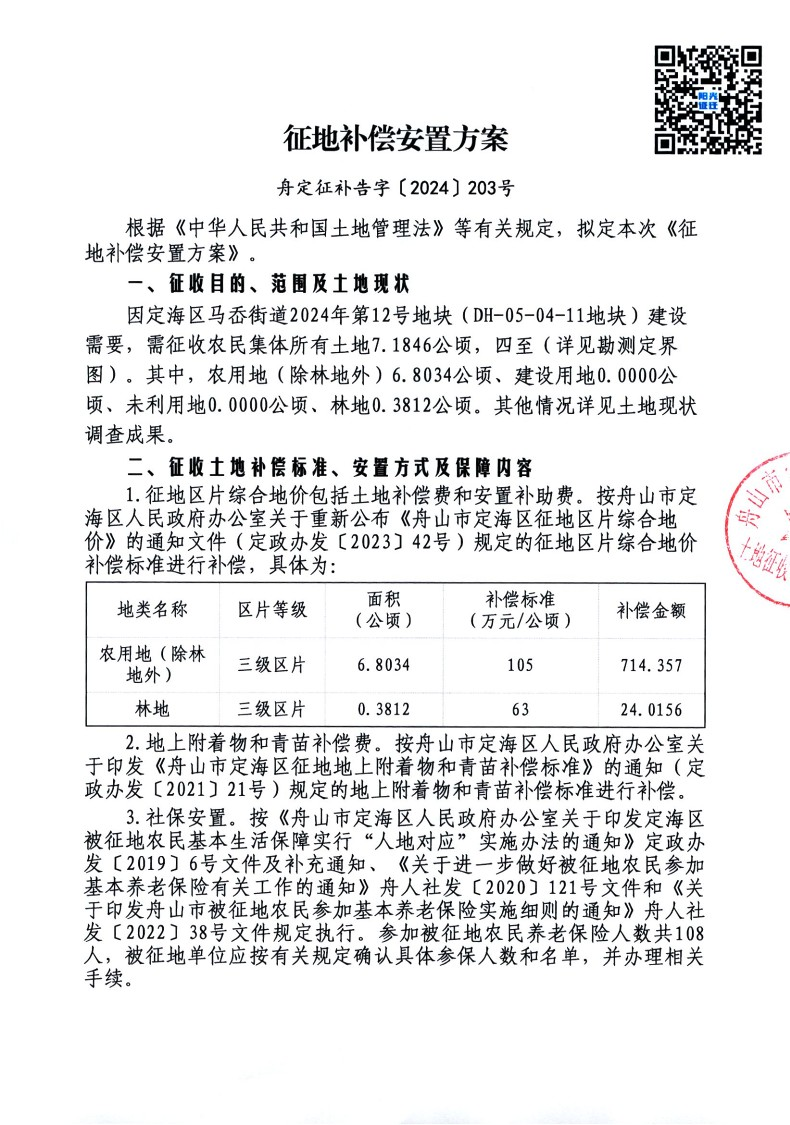 征地補償安置方案公布 舟定征補告字〔2024〕203號