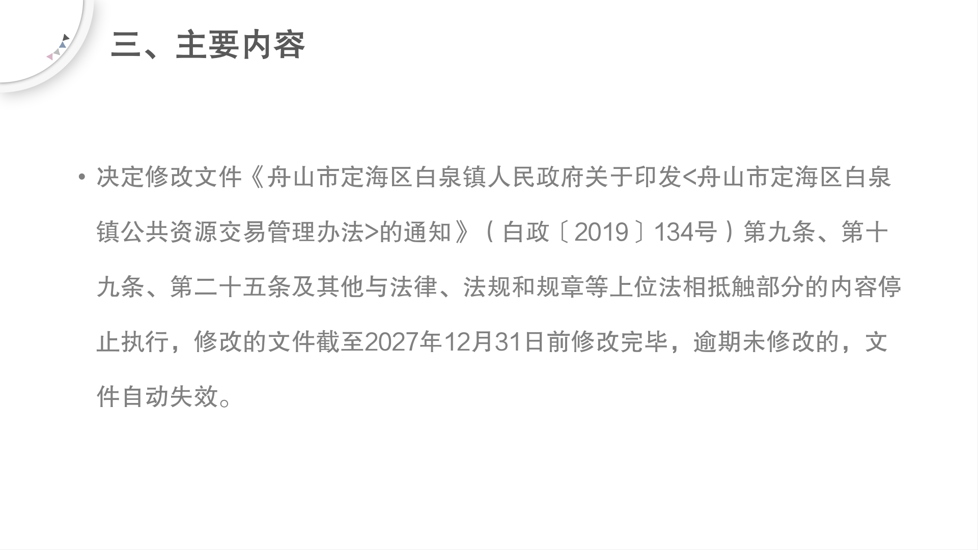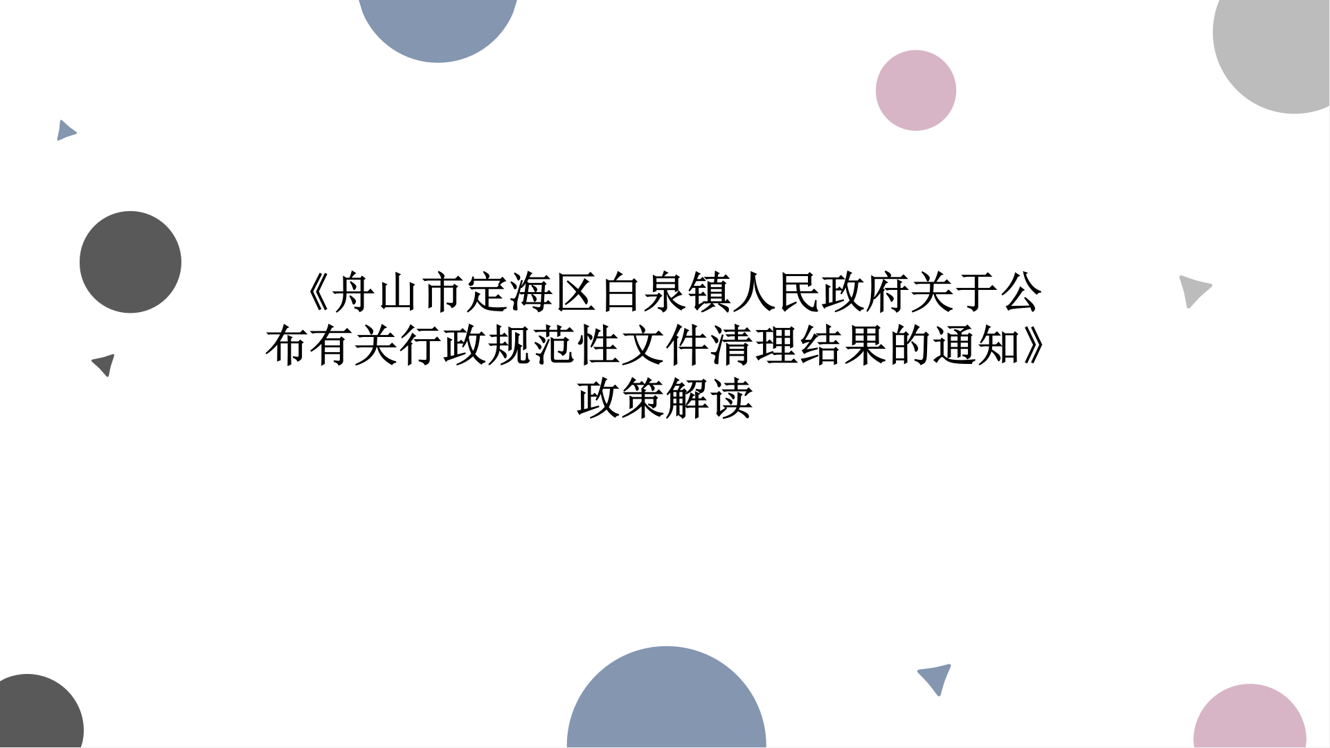 | (圖解)《舟山市定海區(qū)白泉鎮(zhèn)人民政府關(guān)于公布有關(guān)行政規(guī)范性文件清理結(jié)果的通知》政策解讀 | ||
