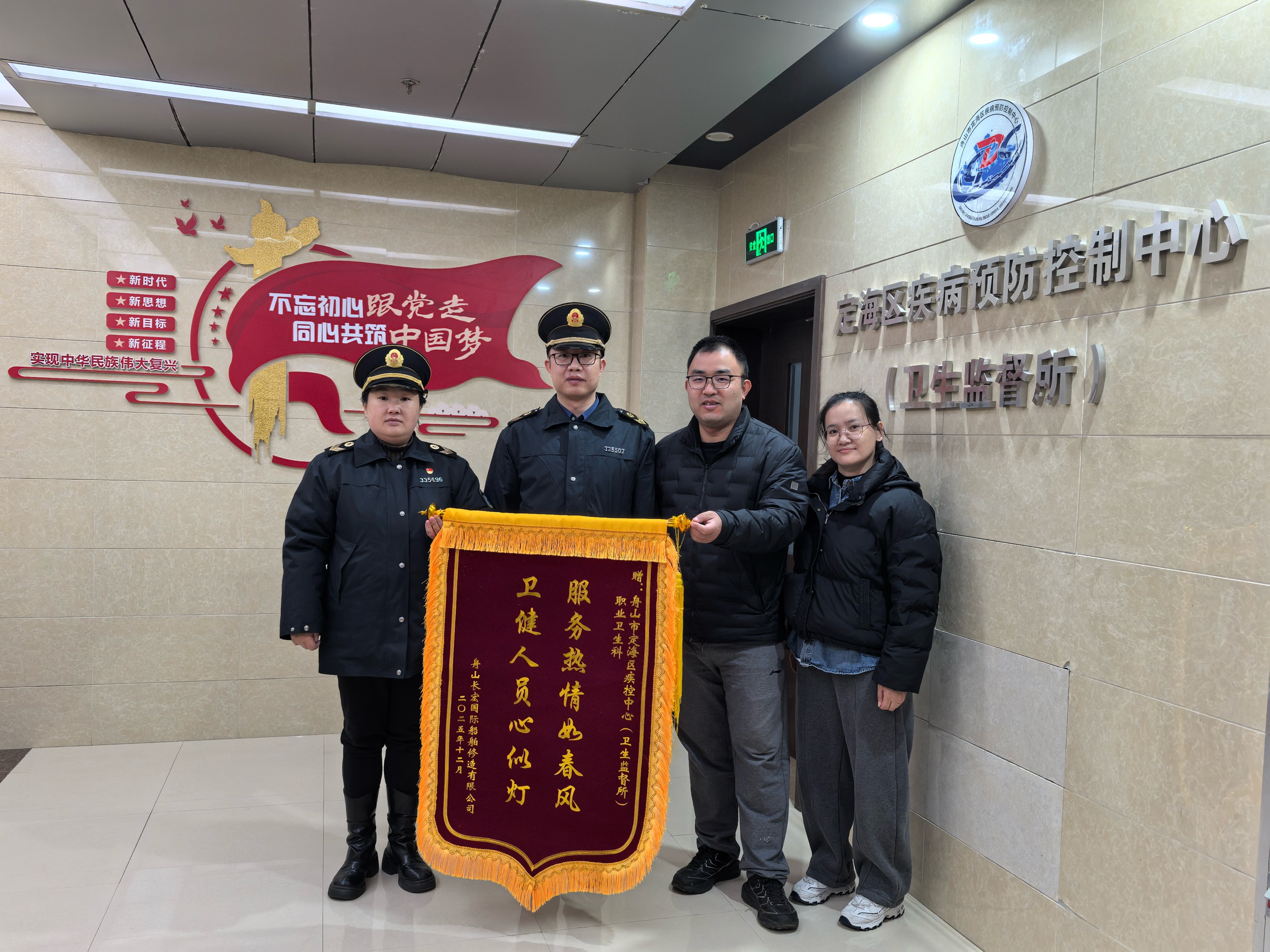 2025年12月25日上午,舟山長(zhǎng)宏國(guó)際船舶修造有限公司代表專程來(lái)到定海區(qū)疾控中心(衛(wèi)生監(jiān)督所),將一面印著“服務(wù)熱情如春風(fēng),衛(wèi)健人員心似燈”的錦旗鄭重送到職業(yè)衛(wèi)生科工作人員手中,以此致謝科室團(tuán)隊(duì)助力企業(yè)構(gòu)建全流程職業(yè)病防治管理體系、守護(hù)勞動(dòng)者職業(yè)健康,為優(yōu)化營(yíng)商環(huán)境、賦能企業(yè)高質(zhì)量健康發(fā)展提供的幫助和支持。這面錦旗,既是企業(yè)對(duì)疾控工作的高度認(rèn)可,更承載著一份沉甸甸的責(zé)任與期許。 船舶修造行業(yè)是職業(yè)病防治的重點(diǎn)領(lǐng)域,針對(duì)長(zhǎng)宏國(guó)際在職業(yè)衛(wèi)生管理中的實(shí)際痛點(diǎn)與需求,區(qū)疾控中心主動(dòng)靠前、精準(zhǔn)對(duì)接,多次深入企業(yè)生產(chǎn)一線,以專題宣講傳知識(shí)、以專業(yè)指導(dǎo)解難題。從職業(yè)病防治制度的科學(xué)制定、作業(yè)場(chǎng)所風(fēng)險(xiǎn)因素的精準(zhǔn)監(jiān)測(cè)評(píng)估,到員工職業(yè)健康監(jiān)護(hù)的規(guī)范開展、防護(hù)措施的落地落實(shí),科室全程跟進(jìn)提供定制化、全鏈條技術(shù)支持,助力企業(yè)成功搭建起覆蓋生產(chǎn)全環(huán)節(jié)、責(zé)任全明晰的職業(yè)病防治管理體系,既牢牢守住了勞動(dòng)者的職業(yè)健康底線,也為企業(yè)高質(zhì)量發(fā)展筑牢了堅(jiān)實(shí)的健康根基。 一面錦旗,一份認(rèn)可;一句致謝,一份鞭策。這面飽含誠(chéng)意的錦旗,不僅是對(duì)疾控工作者專業(yè)能力與服務(wù)態(tài)度的肯定,更堅(jiān)定了大家踐行初心使命的決心。 下一步,定海區(qū)疾控中心將繼續(xù)秉持“以人民健康為中心”的核心理念,深耕職業(yè)衛(wèi)生服務(wù)一線,持續(xù)聚焦轄區(qū)企業(yè)發(fā)展的實(shí)際需求,不斷提升專業(yè)服務(wù)的精準(zhǔn)度與貼心度,以更扎實(shí)的舉措、更優(yōu)質(zhì)的服務(wù)為企業(yè)發(fā)展保駕護(hù)航,為轄區(qū)職業(yè)健康事業(yè)高質(zhì)量發(fā)展貢獻(xiàn)堅(jiān)實(shí)疾控力量。 |