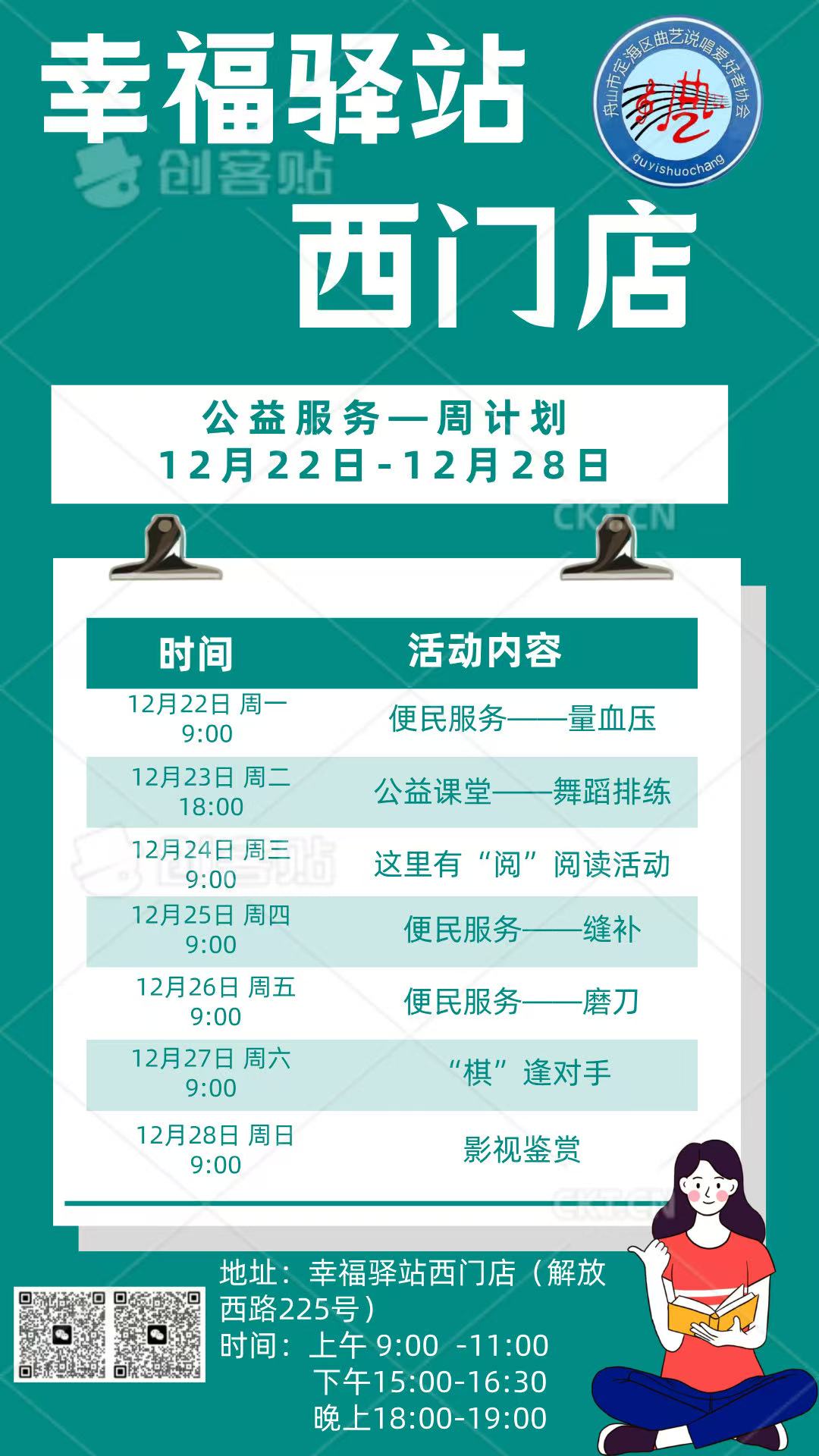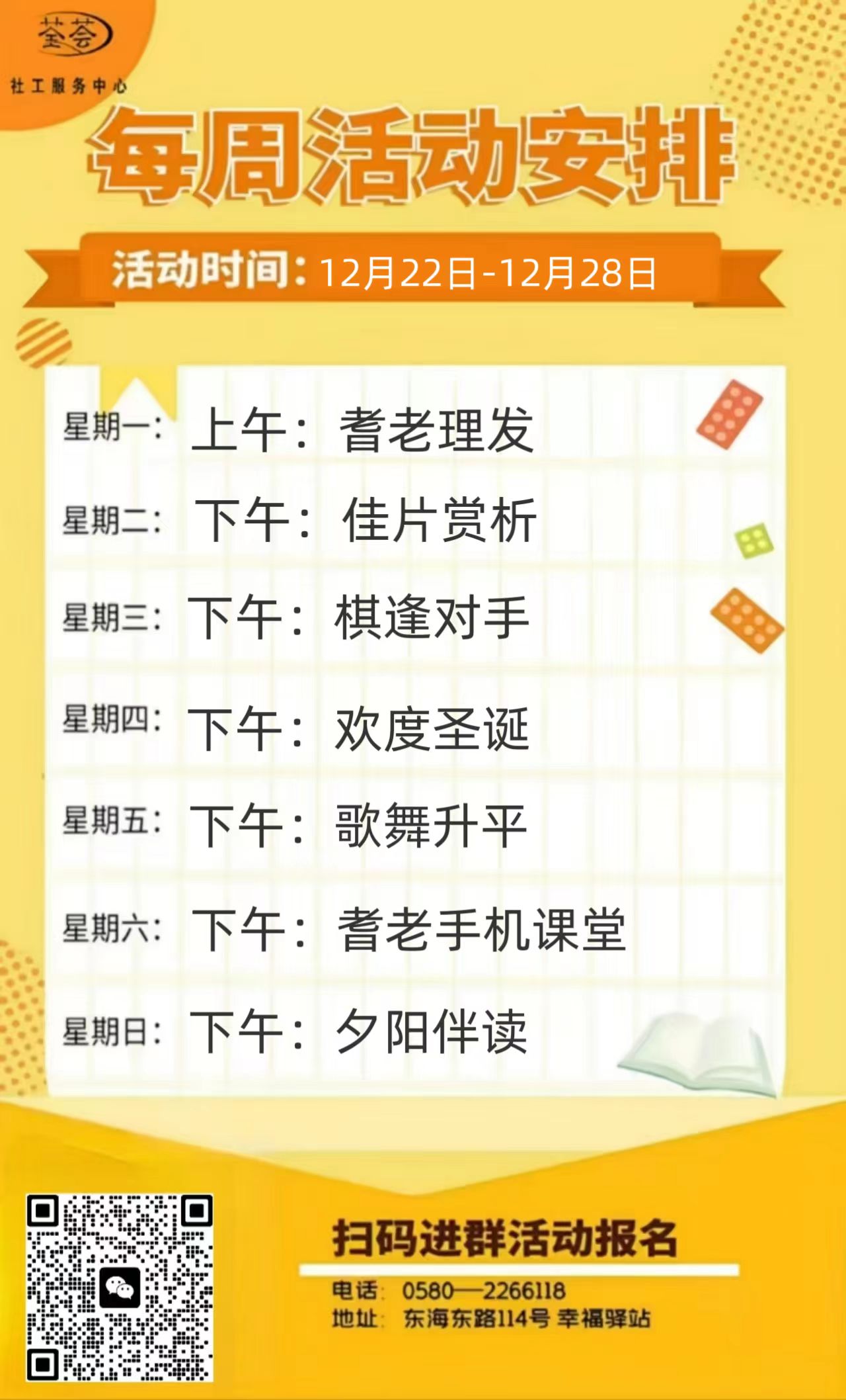 定海區“幸福+”民生服務陣地|公益服務一周活動預告(12.22-12.28)