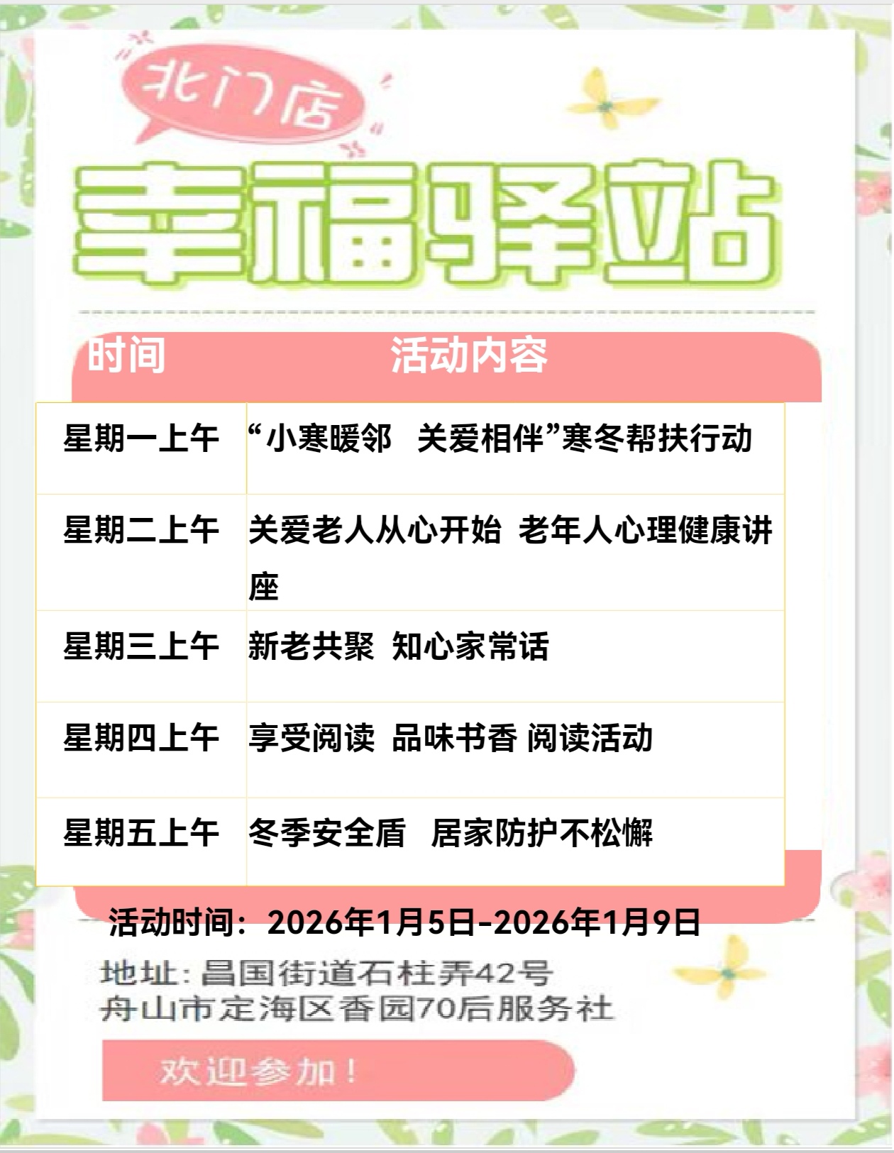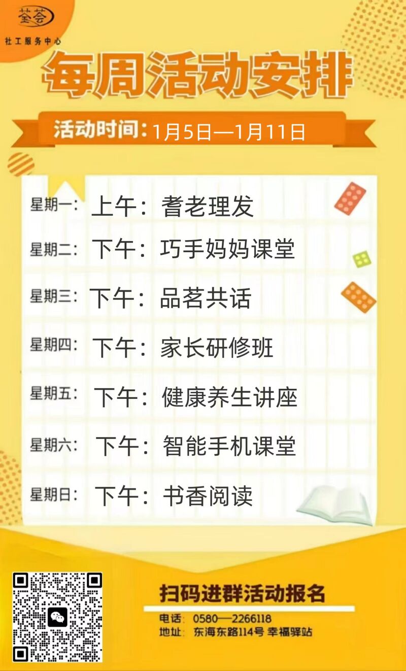 定海區(qū)“幸福+”民生服務陣地|公益服務一周活動預告(1.5-1.11)