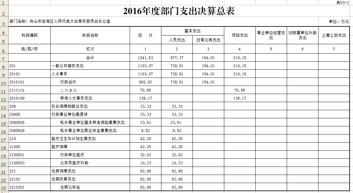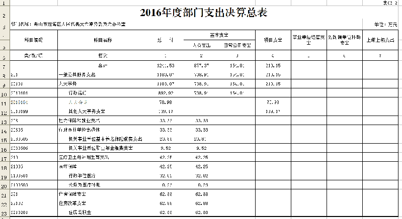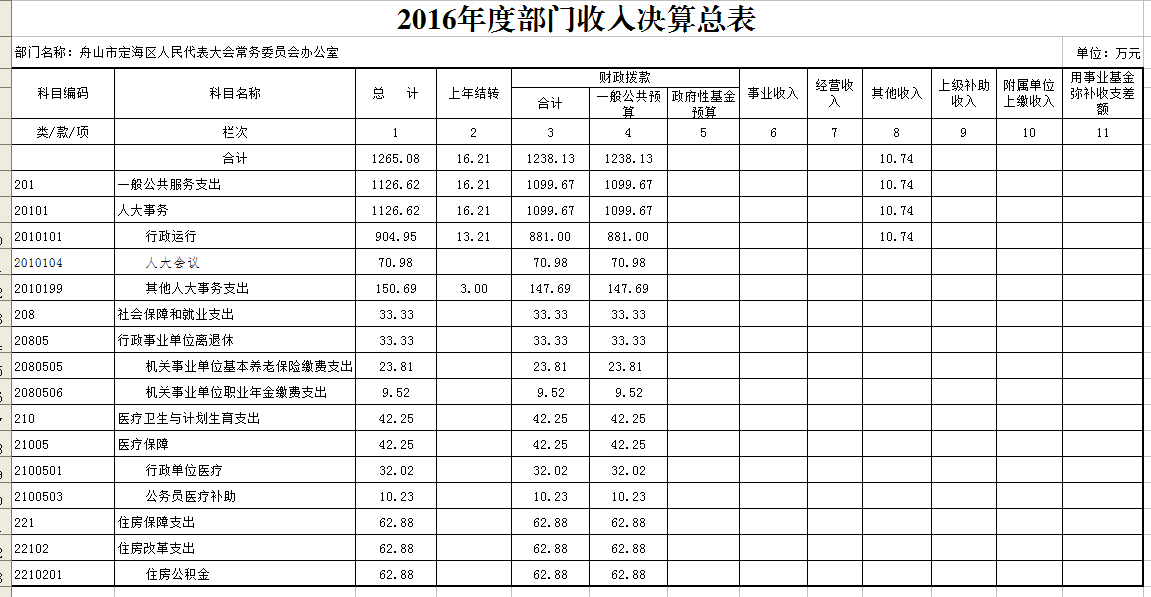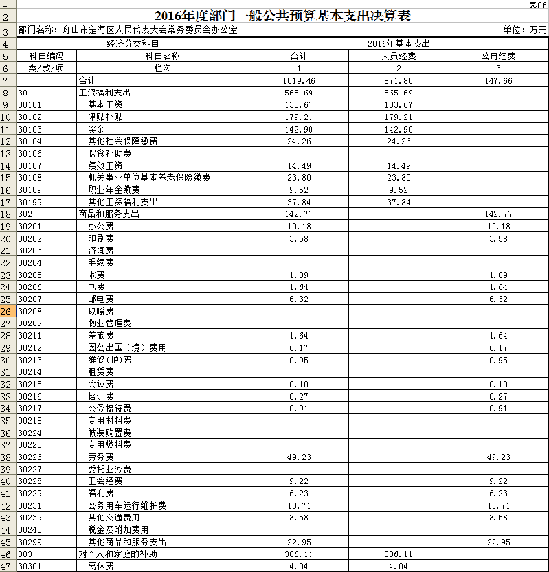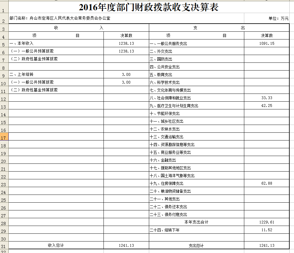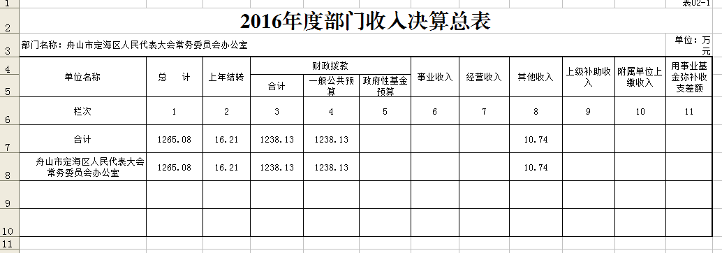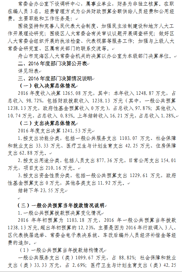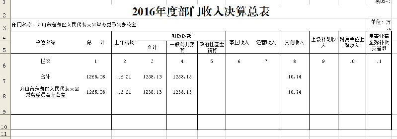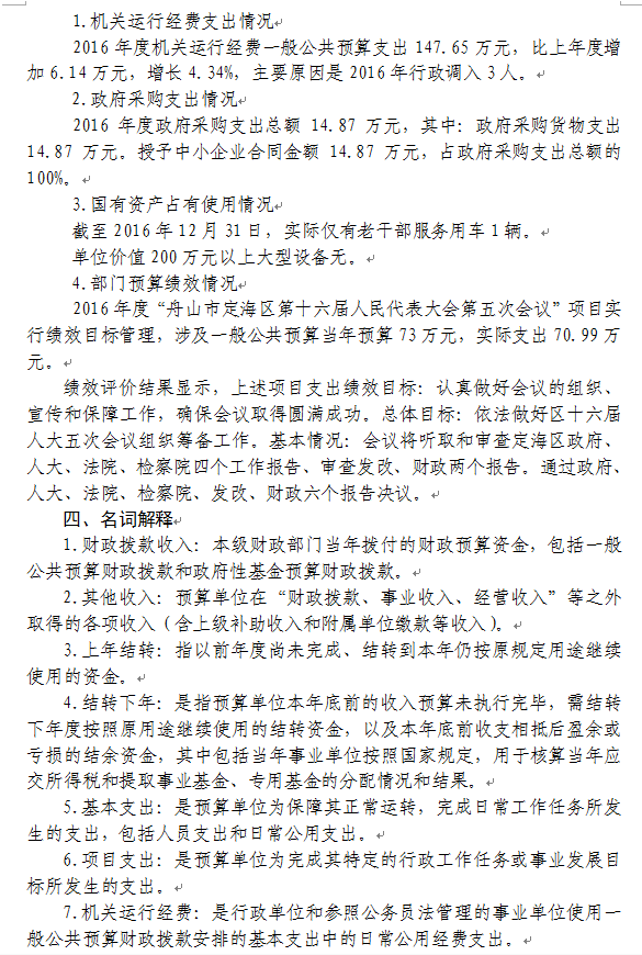 2016年度舟山市定海區人大常委會辦公室部門決算