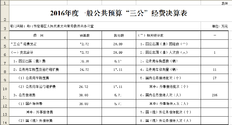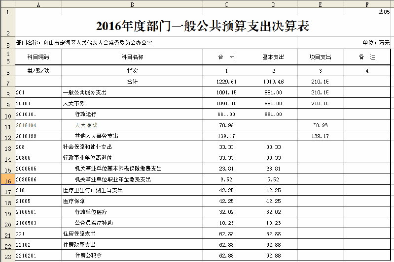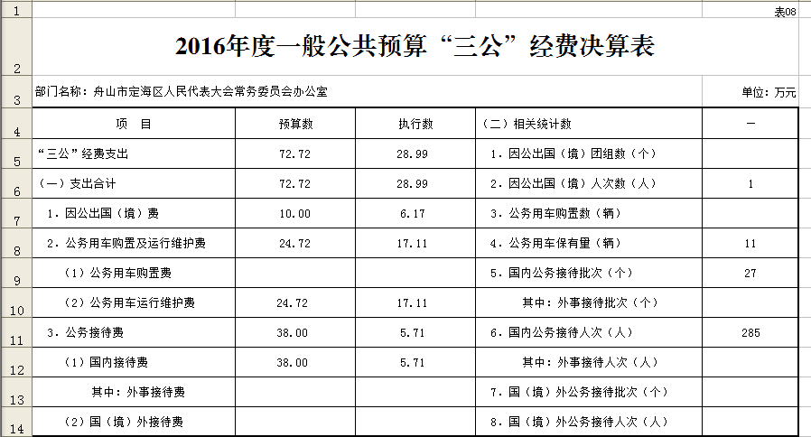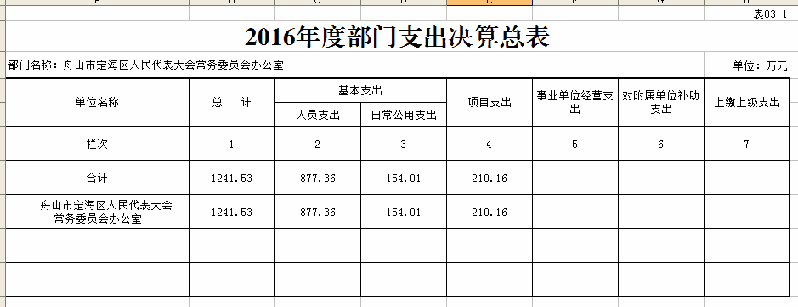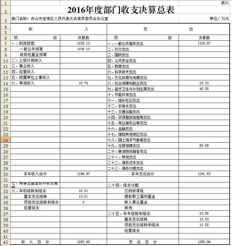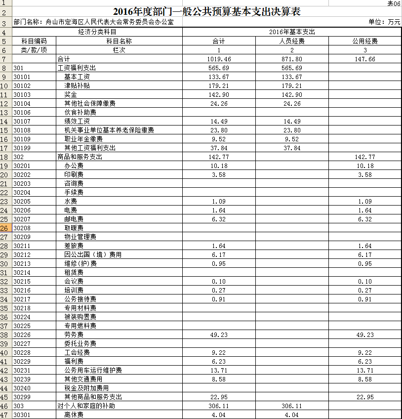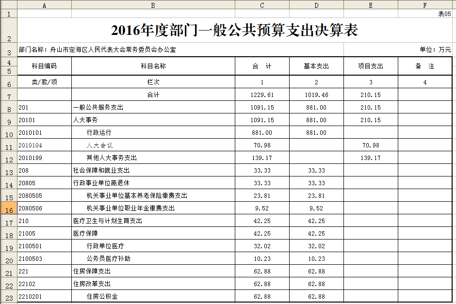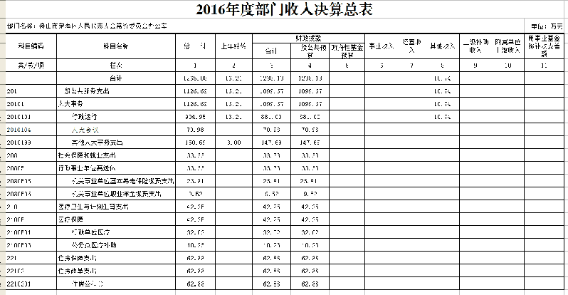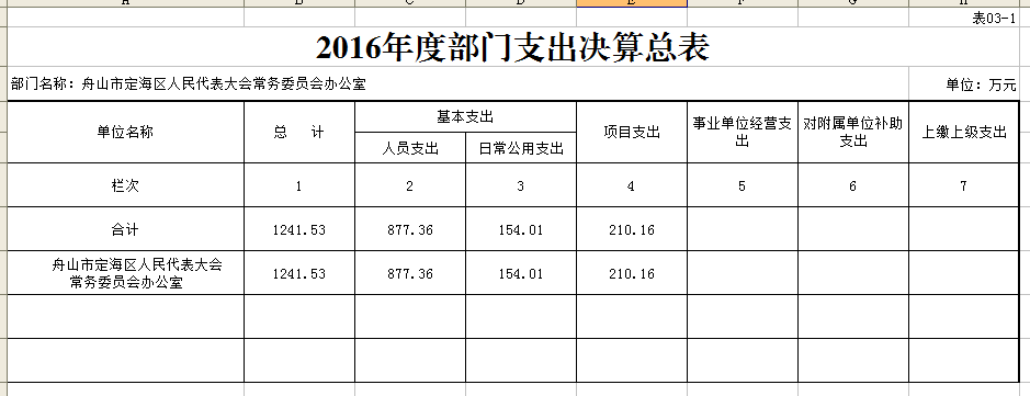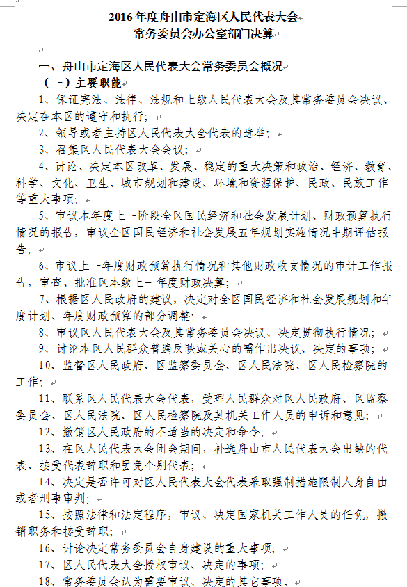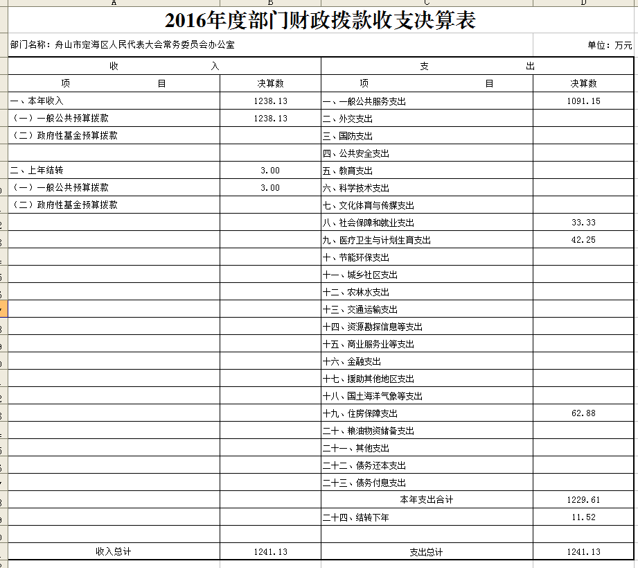 2016年度舟山市定海區人大常委會辦公室部門決算