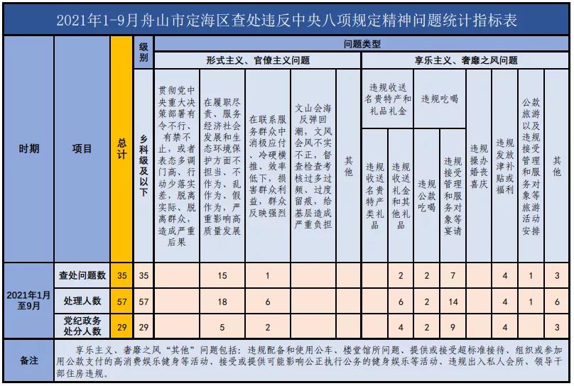 2021年1-9月,全區各級紀檢監察組織共查處違反中央八項規定精神問題35起,處理57人,給予黨紀政務處分29人。其中: